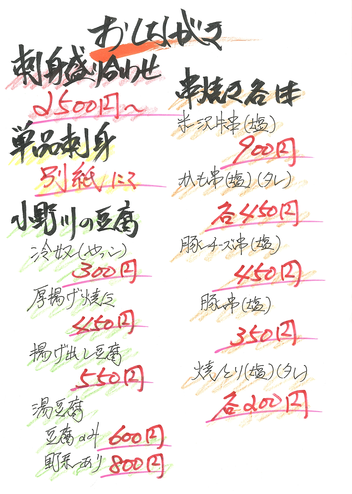 カウンターでゆっくりと米沢の味をお楽しみください。ご出張や一人のみの方にもおすすめです。